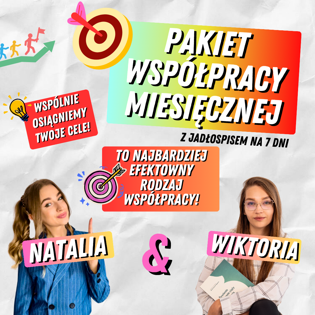 Dzięki współpracy z Wiktorią mogę docierać do jeszcze większej liczby wspaniałych kobiet. Każdy z nas ma swoją rolę – ja, Natalia, analizuję, tworzę plan suplementacji i zalecenia zdrowotne, a Wiktoria przelewa to na Wasze talerze, projektując indywidualne jadłospisy i wspierając Was w codziennych wyborach.