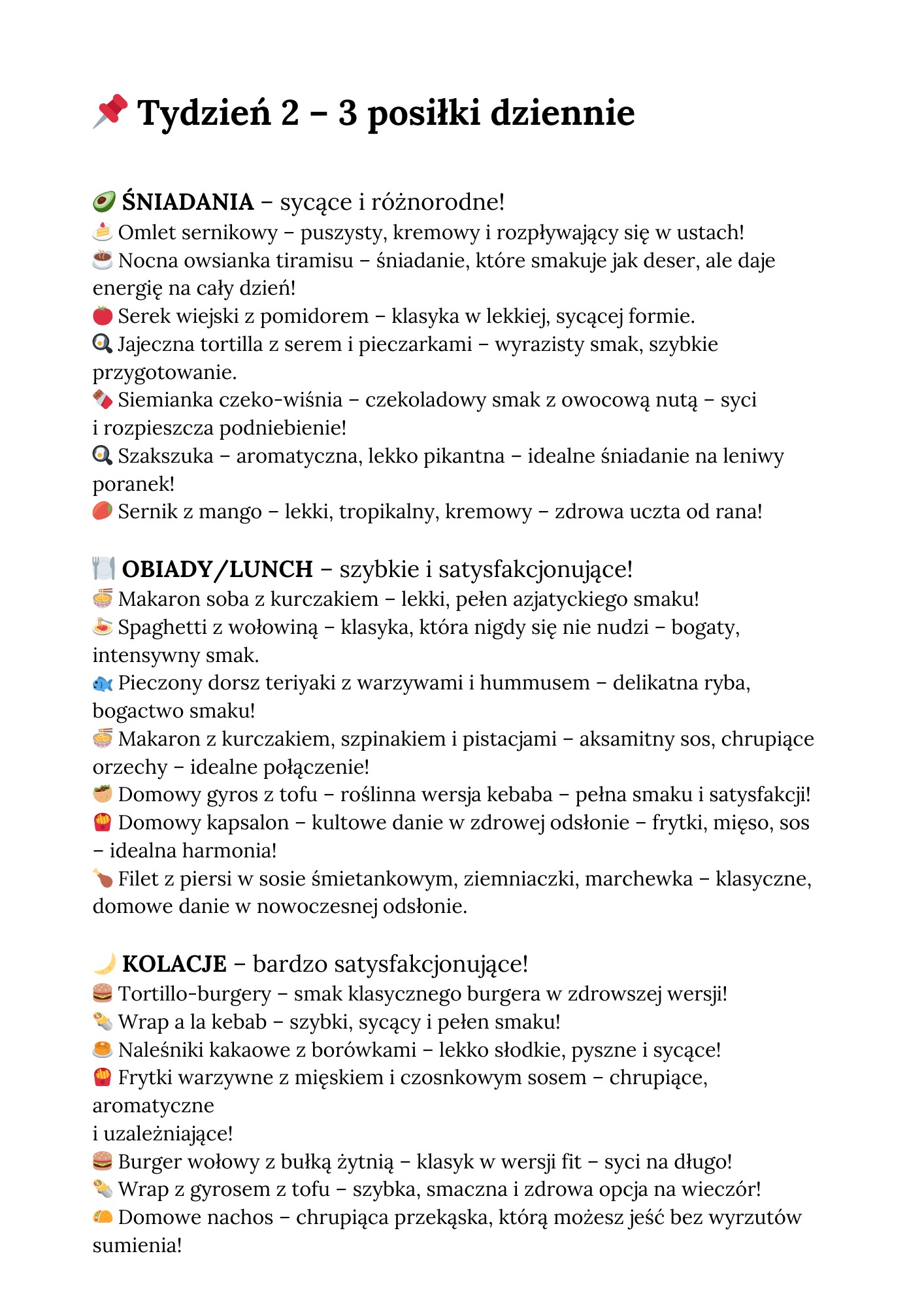 JadÅospis na 14 dni â pierwszy tydzieÅ 4 posiÅki, drugi 3 â bo ÅŒycie bywa róŌne, a ja nie narzucam schematów!